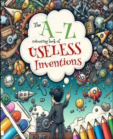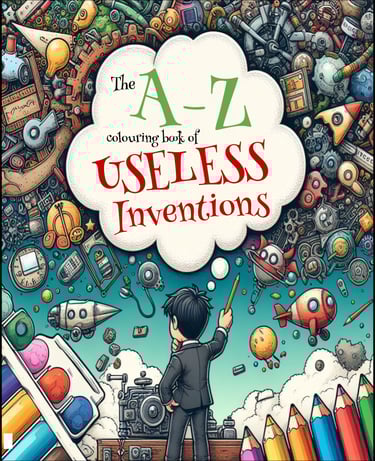 another crazy colouring book filled with useless and pointless and hilarious inventions to make the world a funnier place... an homage to the japanese art of chindogu.