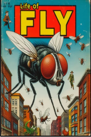 Fly the fly was never like all the other flies. She was never satisfied just sitting around on piles of stinky dog poo. Fly had to fly.